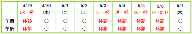 <ゴールデンウィークの診療のお知らせ> ゴールデンウィークは診療時間の変更はなく、通常通り診療いたします。